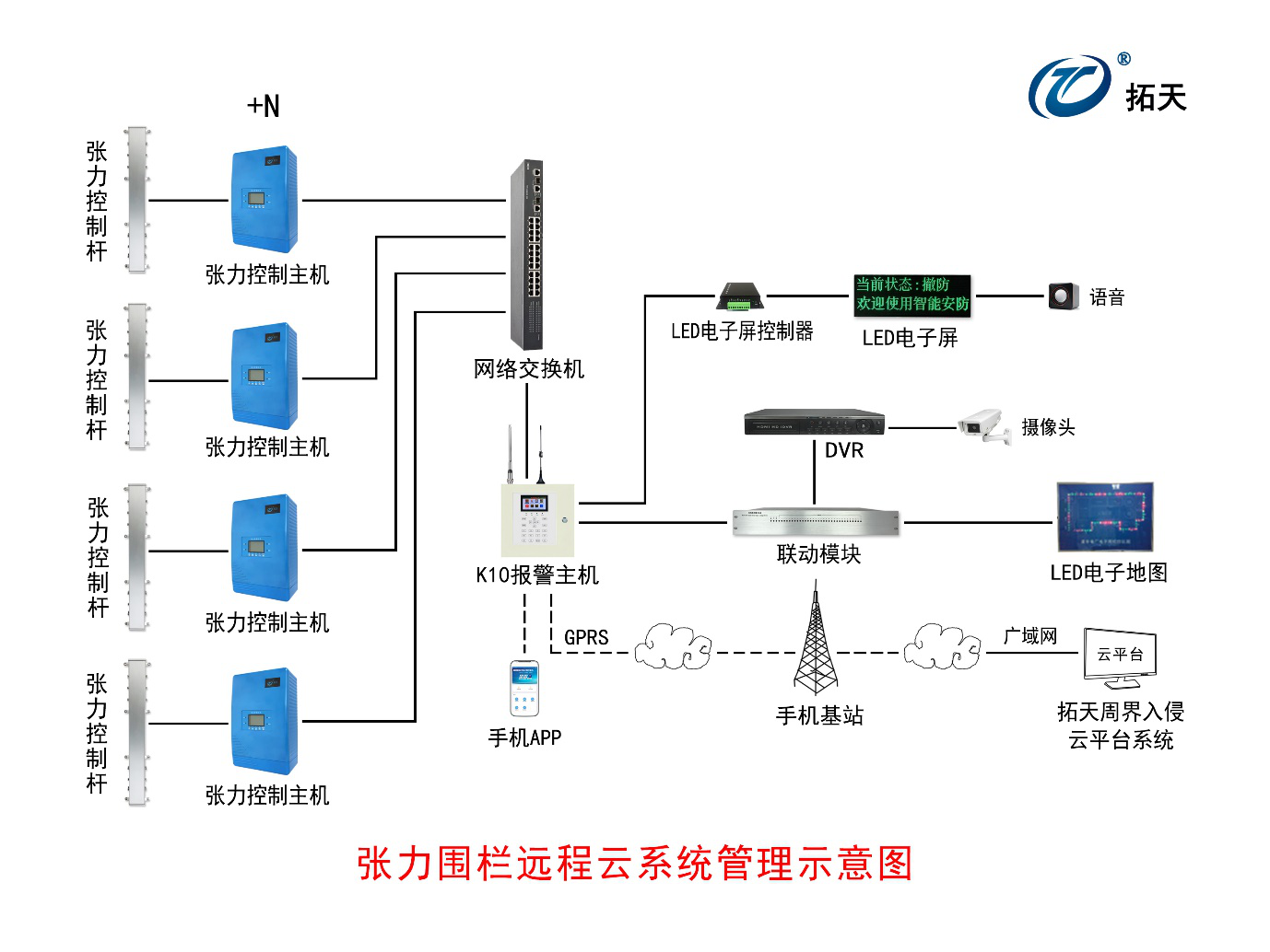 可與周界報(bào)警設備(bèi) GPRS報(bào)警主機通過手機卡連廣域網雲服務器